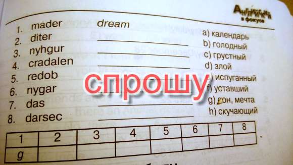 Расшифруй слова и напиши их перевод. запиши ответы в таблицу