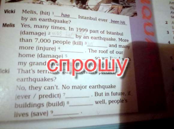№ 1 --were killed ,were injured, was damaged ,was repaired ,were built ,were saved