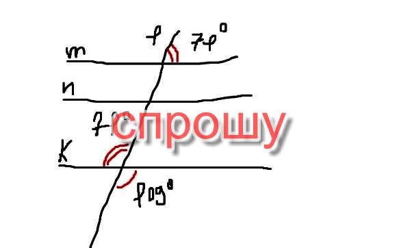 Какие из прямых m,n,k изображенных на рисунке являются параллельными?