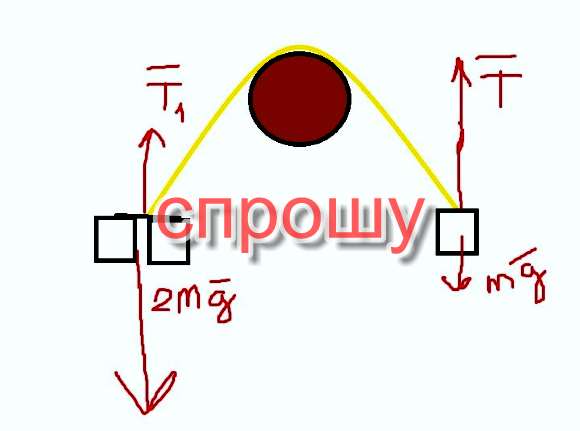 Но ведь T=2mg (левые грузы собственно и натягивают нить).