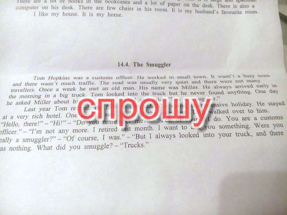 Один раз в неделю он встретил старика. Его именем был Миллер. Он всегда прибывал рано утром в большом грузовике. Том всегда изучал грузовик, но он никогда ничего не находил. Однажды он спросил Миллера о своей работе. Миллер улыбнулся и сказал, “я - контрабандист”.