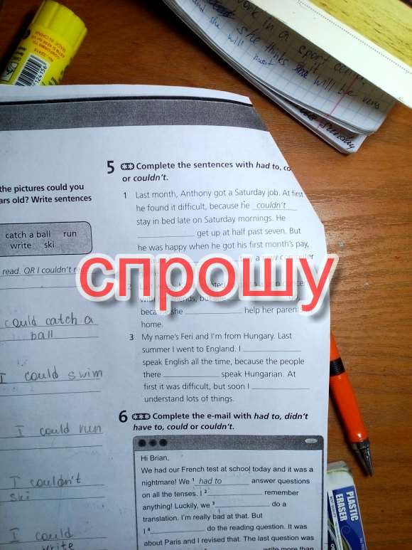 Срочно, помогите. Через час занятия. нужно поставить had to, could или couldn't