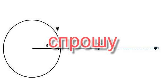 Формула для нахождения потенциала в точке, находящейся вне шара: