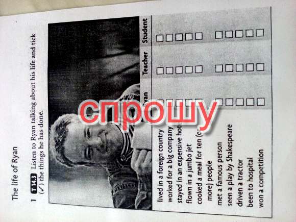 А есть текст или что-нибудь, ведь в задании сказано, что нужно послушать рассказ Райана о его жизни и отметить те вещи которые он уже сделал.