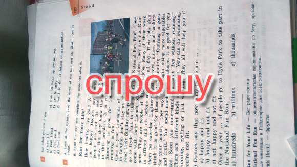 Раз в год сотни жителей Лондона выходят из домов и вместо чтения воскресной газеты, идут к Гайд-Парку ,чтобы принять участие в Национальном веселом забеге. Там они могут побегать с друзьями,многие приходят туда со своими семьями. Их зовут веселыми бегунами. Эти люди из разных профессий. Многие работают в офисах и сидят за компьютером почти весь день. Эта работа не дает им никакого опыта. Инжинеры и доктора,няни и банкиры, они считают,что бегать для них полезно."Бег полезен для твоего здоровья",говорят они."Ты начинаешь есть много овощейи фруктов. Начинаешь больше времени проводить на улице. И это тоже хорошо для тебя.Вскоре ьы понимаешь ,что не можешь обойтись без бега.".В мире есть много видов спорта. Ты можешь просто плавать, бегать,кататься на велосипеде,или просто ходить. Все это тебе поможет, особенно еслиты не в форме.