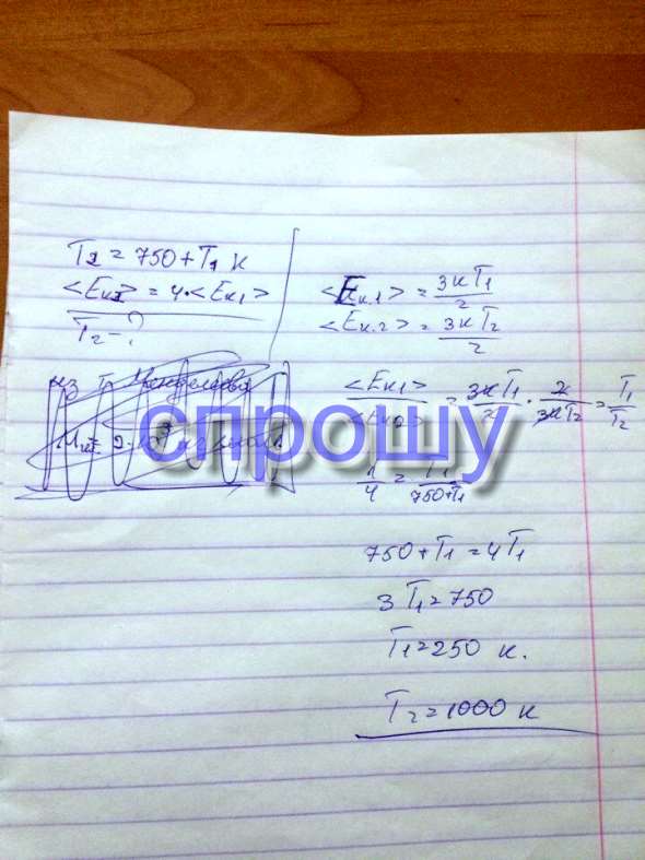 При увеличении абсолютной температуры на 750 к средняя кинетическая энергия теплового движения молекул гелия увеличилась в 4 раза какова конечная температура газа?