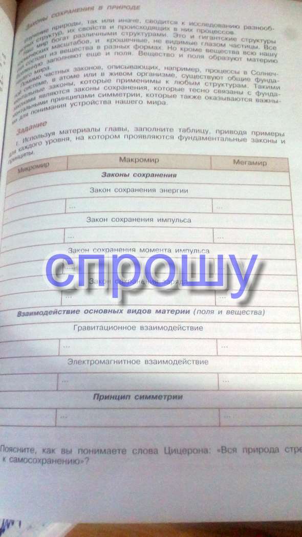 Используя материалы главы заполните таблицу приводя примеры для каждого уровня на котором проявляются фундаментальные законы и принципы .
