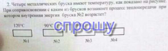 Четыре металлических бруска имеют температуру как показано на рисунке при соприкосновении С каким из брусков возникает процесс теплопередачи при котором внутренняя энергия бруска номер 2 возрастет???