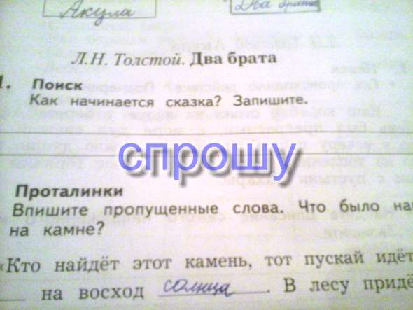 Два брата пошли вместе путешествовать. В полдень они легли отдохнуть в лесу. Когда они проснулись, то увидали – подле них лежит камень и на камне что‑то написано. Они стали разбирать и прочли: