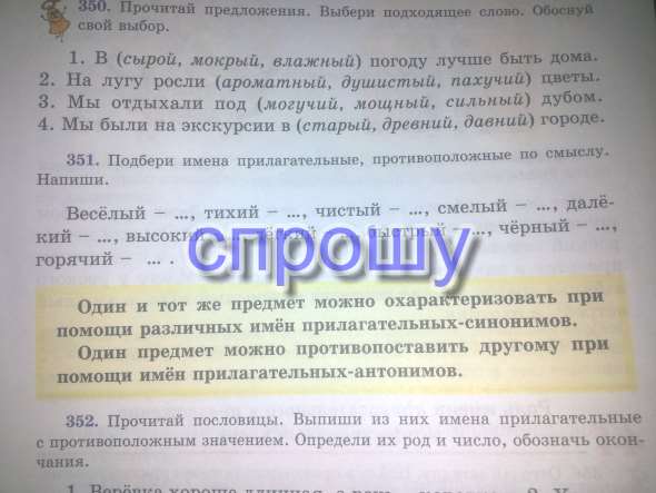 Упражнение 351, подбери имена прилагательные,противоположные по смыслу. напиши