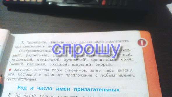 Сообразительный-смекалистый, грустный-печальный-радостный, апельсиновый-оранжевый, апоматный-душистый, маленький-большой-широкий,