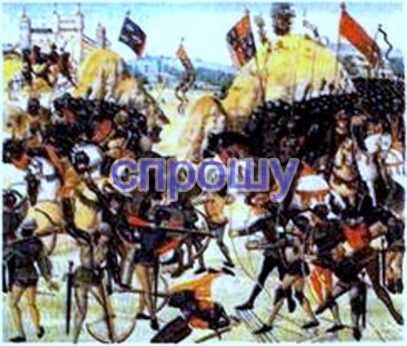 Где на этом рисунке англичане, а где французы? Опишите оружие и доспехи сражающихся