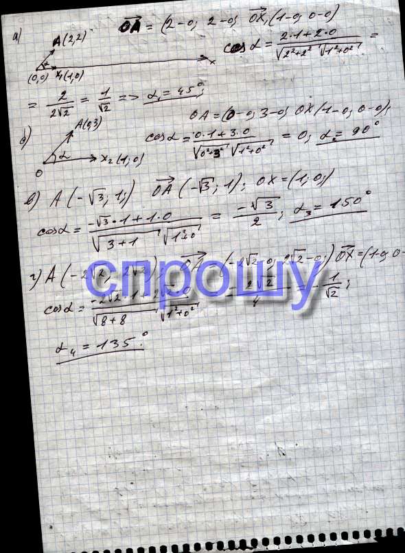 Найдите угол между лучом ОА и положительной полуосью Ох, если точка А имеет координаты: а) (2; 2); б) (0; 3); в) (- √3; 1); г) (-2√2 ; 2√2).