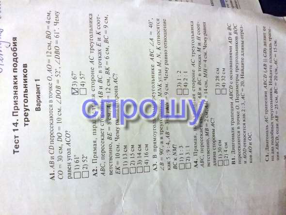 А5: т. к. периметры треугольников соотносятся, как 2:3, то и соответственные стороны треугольников будут иметь такое же соотношение, след-но, ОС:ОА=2:3
