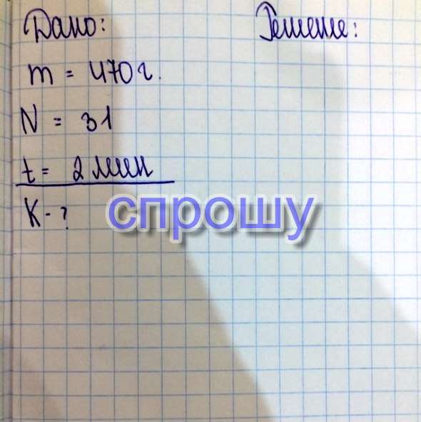 W^2=k/m значит, k=m*w^2; w=2Pi*v; v=N/t