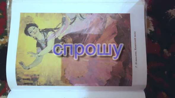 Передо мной картина Г. Исмаиловой "Казахский вальс" Сама художница Гульфайрус Исмаилова с Казахстана. Поетому она как не кто друой смогла передать образ казхстанской красавицы. Девушка изображена в традиционном казахском костюме. Ее золотистый камзол поблескивает на стройном теле. Мне кажется, что художница хотела передать красоту, жизнерадостность, грациозность и обаяние танцовщицы. Ее пышное платье взлетает в вихре танца, а руки как птицы взмывают ввысь. Свет и тень на этой картине переливаются на теплых тонах красок, которые передают веселье царящее там. Глаза красавицы черные, лучезарные и лукавые, словно зовущие людей потанцевать. Лоб светлый и ясный, нос изящный, губы алые и женственные, как лепестки роз. Волосы словно шелк обвивают гибкий стан девушки. Улыбка будто свет восходящего солнца.Платье у девушки, как вздымающиеся волны океана на закате солнца. Девушка похожа на грациозного лебедя плывущего по водной глади. Я бы очень хотела увидеть эту картину в живую.