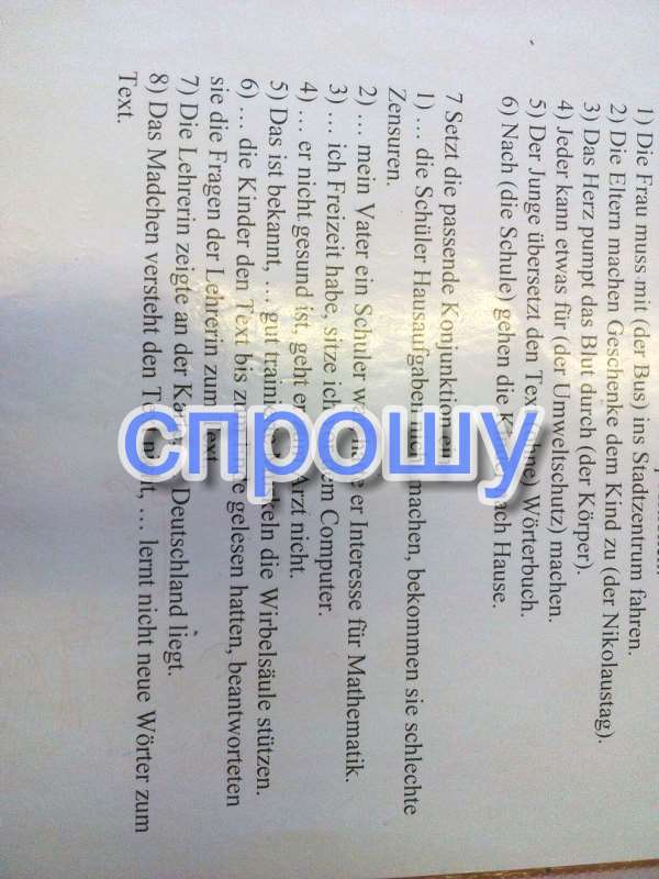 Помогите пожалуйста с немецким . Нужно вставить предлоги в №7(dass,wo,weil,da,ob,wenn,als,obwohl,nachdem) и перевести предложения . Перевод если будет по переводчику засчитываю за неправильный ответ. Даю много баллов
