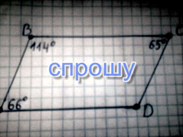 Дано АBCD парраллелограм угол В 144 угол С 65 угол А 66