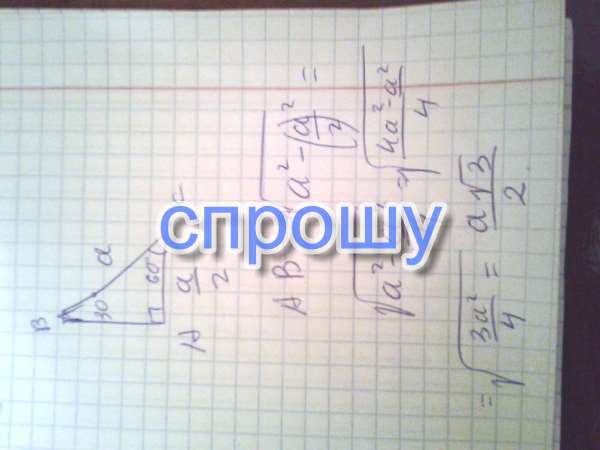 В прямоугольном треугольнике с гипотенузой а и углом 60 градусов найдите катет, противолежащий углу.