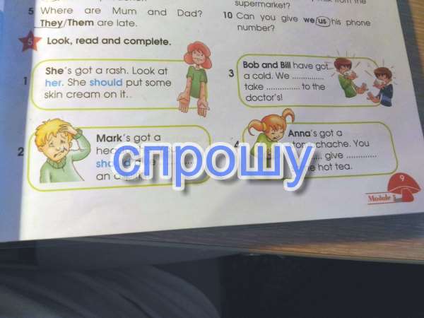 2) You should give his an aspirin. 3) should, our. 4) should, her на счёт should я неуверинна но та можеш посмотреть в переводчике