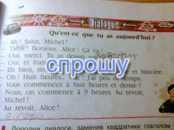 Окей, а у меня французский, гимнастика и история