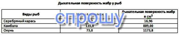 Пользуясь таблицей «Дыхательная поверхность жабр у рыб» и знаниями курса биологии ответьте, на следующие вопросы: