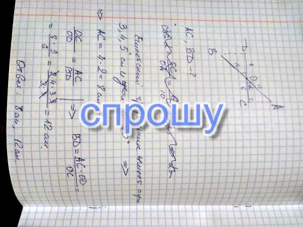 Треугольник с гипотенузой 5, катетом 3 и углом 90градусов имеет второй катет 4. из соотношения этого треугольника к тр-ку AOC находим ас=8. далее из соотношения катетов тр-ка аос к катетам тр-ка оdb находим db=12.