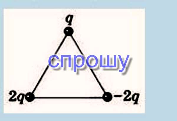 В вершинах правильного треугольника расположены точечные заряды 2q, –2q, q. Сила, действующая на заряд q, направлена