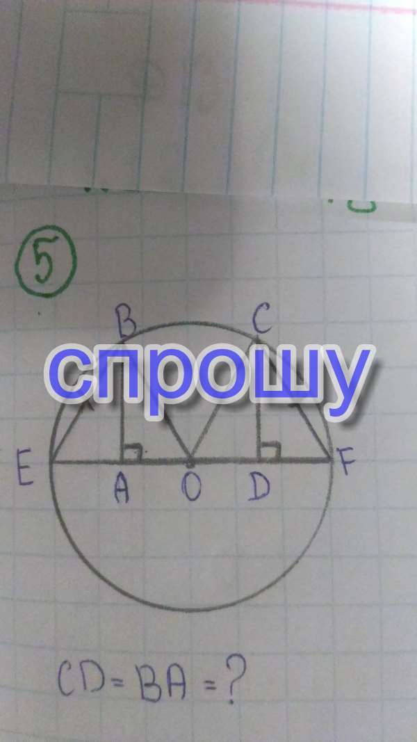 Док-во:EB=CF(по условию),EO=OF(r одной окружности),BO=OC(r одной окружности),следовательно ∆EBO=∆OCF(по 3 признаку),следовательно CD=BA(ч.т.д)