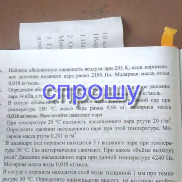 Абсолютная влажность= 2190*0,018/8,31/293= 0,0162 кг/м^3 .