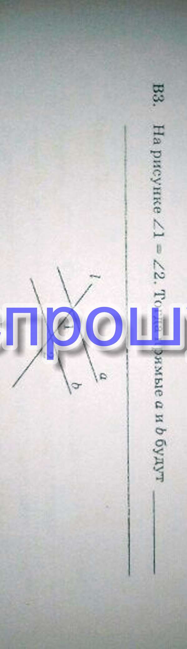 На рисунке угол 1 = углу2. Тогда прямые будут...