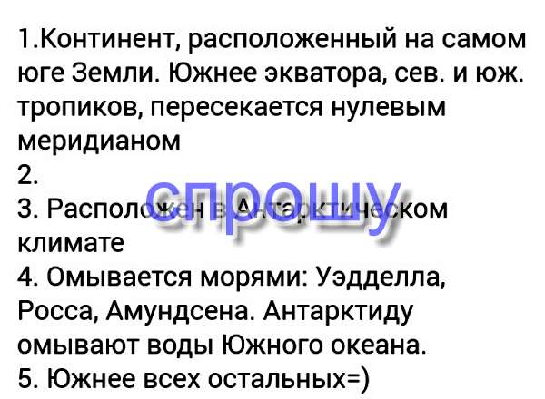 Практическая работа: описание материка Антарктиды.