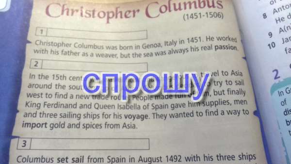 В 15 веке было трудно и опасно путешествовать в Азию вокруг южной Африки. Колумб решил плыть на запад, чтобы найти новый торговый путь. Люди смеялись над ним, но, наконец, король Фердинанд и королева Изабелла Испании, дали ему припасов, людей и 3 парусный корабль для его путешествия. Они хотели найти способ, чтобы импоптировать золото и пряности из Азии.
