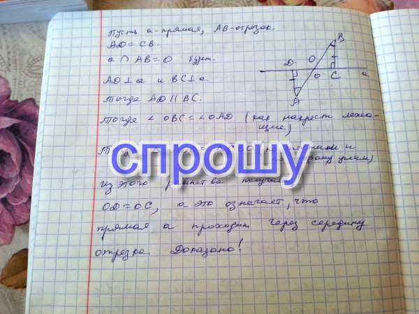 Докажите, что если концы отрезка равноудалены от прямой, пересекающей отрезок, то эта прямая проходит через середину отрезка
