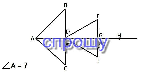 Надо найти угол А, если FGH = 90°, CDF = 60°, EG = FG.