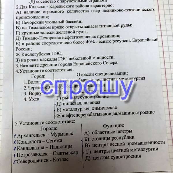 4) 1-Д, 2-Е, 3-Б, 4-Ж