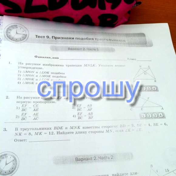 №1-4,№2-2,№3-6 см(так как треугольники подобны,стороны пропорциональны)