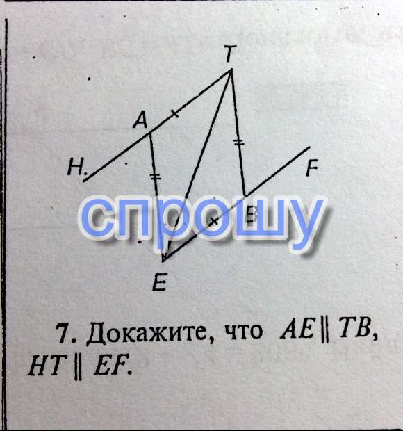 Я бы сделал так: at = eb, ae=tb, et- общая, следовательно тр-ник eat = etb, а из равенства треугольников следует, что угол eta = углу teb следовательно at // eb (накрест лежащие углы). И в случае ae и tb угол aet = углу etb следовательно ae//tb (накрест лежащие углы). Надеюсь, помог, удачи :)