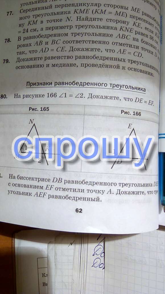 1=2,значит угол едф=180-угол1 угол ефд =180-1(2)значит углы едф и ефд равны и этот треугольник равнобедренный
