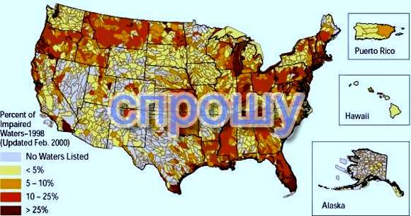 отметьте на карте районы загрязнения США и источники их загрязнения.