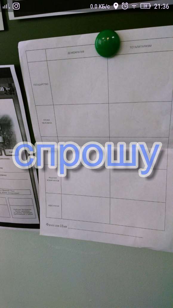 Как я поняла, эта таблица основных понятий демократии и тоталитаризма в различных политических понятиях и сферах. Лёгкая таблица. Вбиваешь, мол "основные положения демократии и тоталитаризма в государстве" и тупо вписываешь в колонки. И так все пункты.