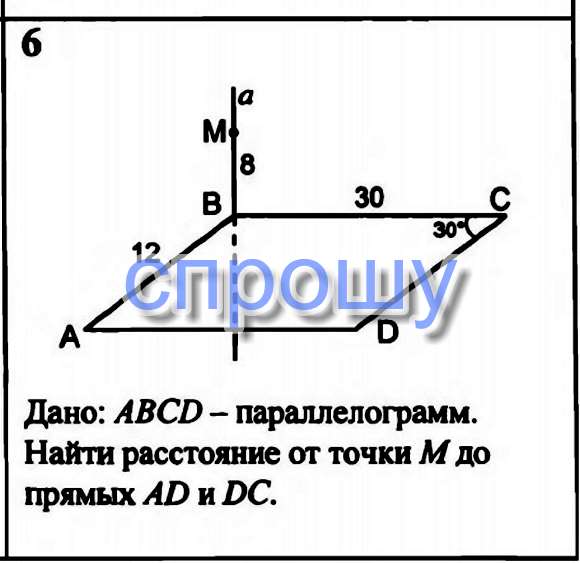 СРОЧНО ТЕОРЕМА О ТРЁХ ПЕРПЕНДИКУЛЯРАХ,ОДНО ЗАДАНИЕ НУЖНО НАЙТИ РАССТОЯНИЕ ОТ ТОЧКИ М ДО ПРЯМОЙ АD ,ЗАРАНЕЕ БЛАГОДАРЮ!