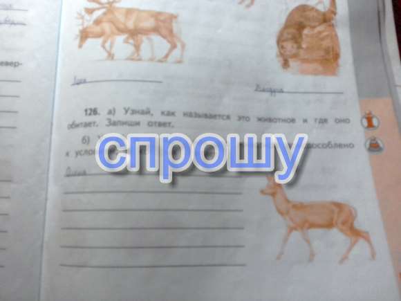 Узнай , как называется это животное (это олень?) и где оно обитает.