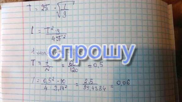 Маятник совершил за 1 мин. 120 колебаний. Определить длину маятника. Фото