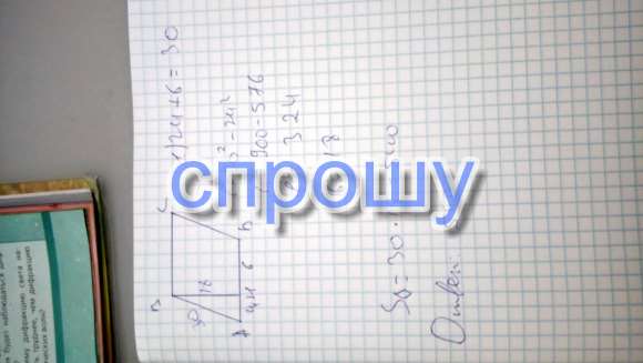 Высота ВН ромба АВСD делит его сторону AD на отрезки AH = 24 и HD = 6 . Найдите площадь ромба.