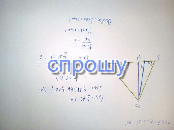 Дан треугольник ABC , площадь которого равна 36 см^2. На стороне AC отмечена точка К так, что АК:КС = 1:5. Выполните рисунок и найдите площадь треугольника ABK.