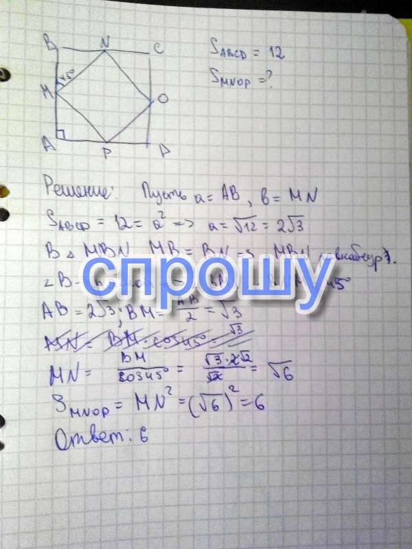 Площадь квадрата равна 12. Найдите площадь квадрата, вершинами которого являются середины сторон данного квадрата.