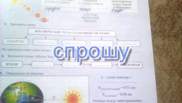 Космические тела Солнечной сиситемы 1-Земля,2-?,3-?,4-?,5-?.