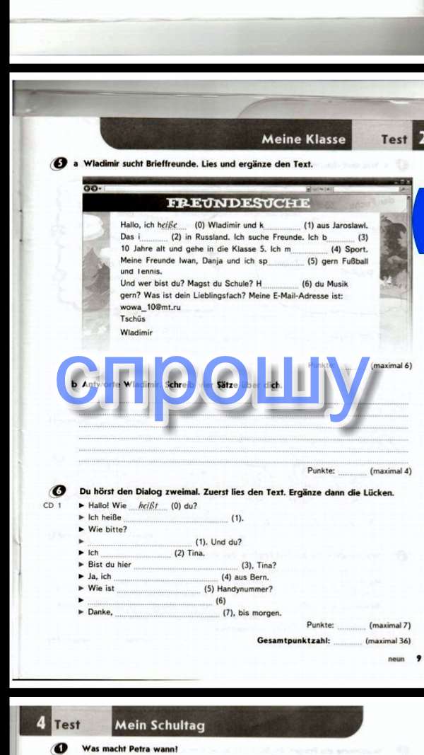 b) Ich heiße Katja. Ich bin 15 Jahre alt. Ich komme aus Moskau, das ist die Hauptstadt von Russland. Mein Hobby ist Lesen, das macht mir Spaß.