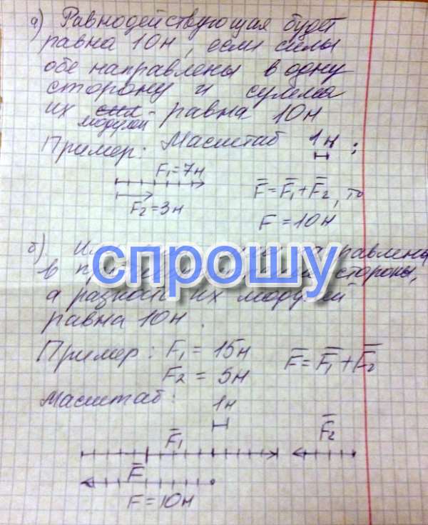 Какие силы, направленные вдоль одной прямой , могут дать равнодействующую, равную 10 Н Как они должны быть направлены при этомСделайте рисунок